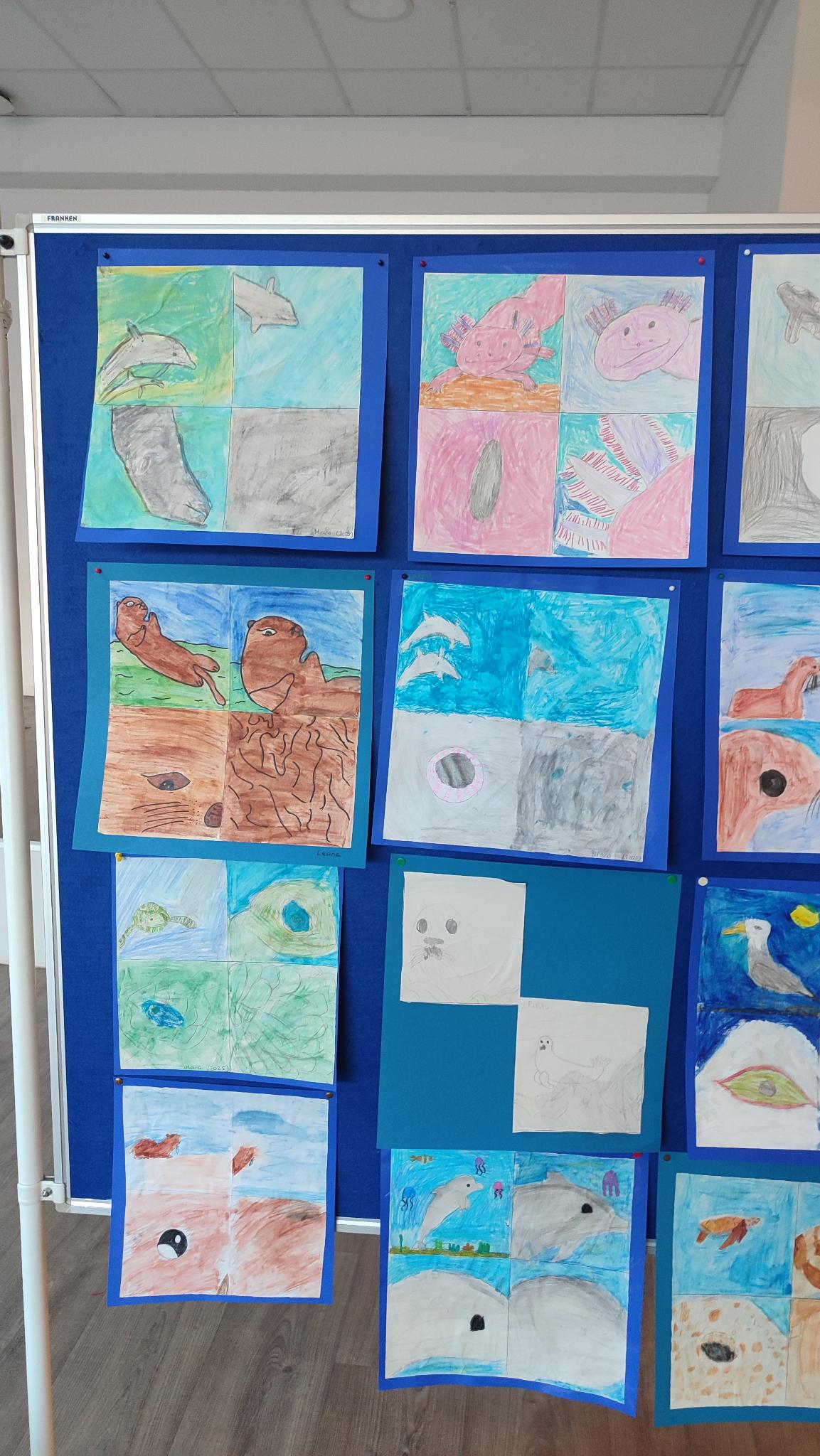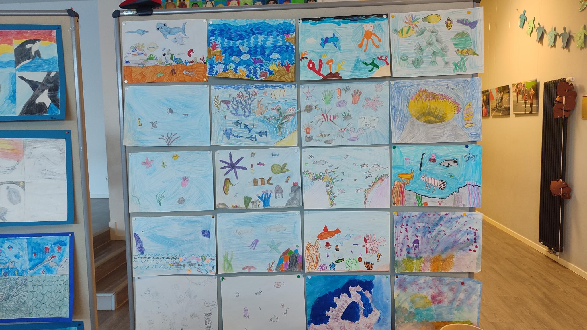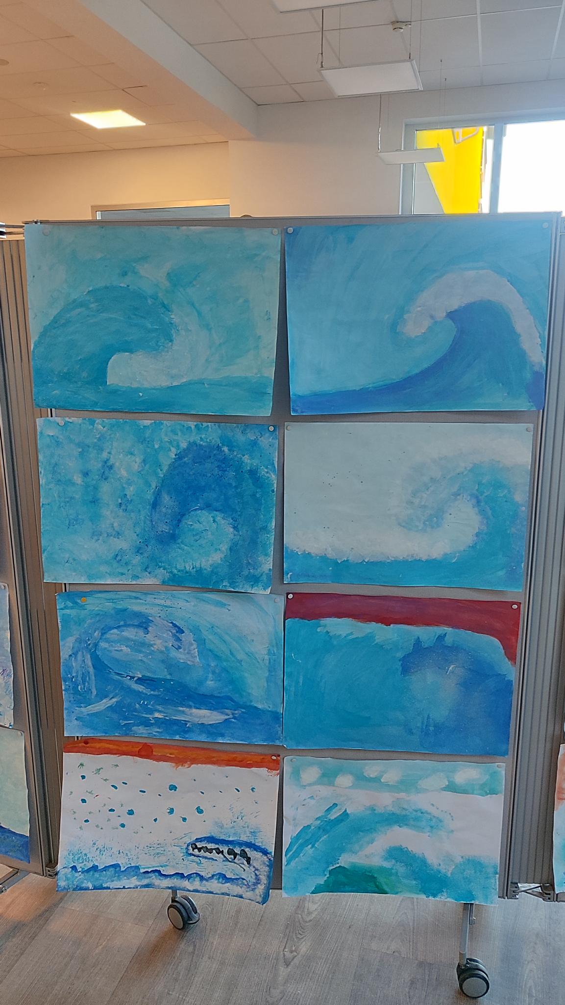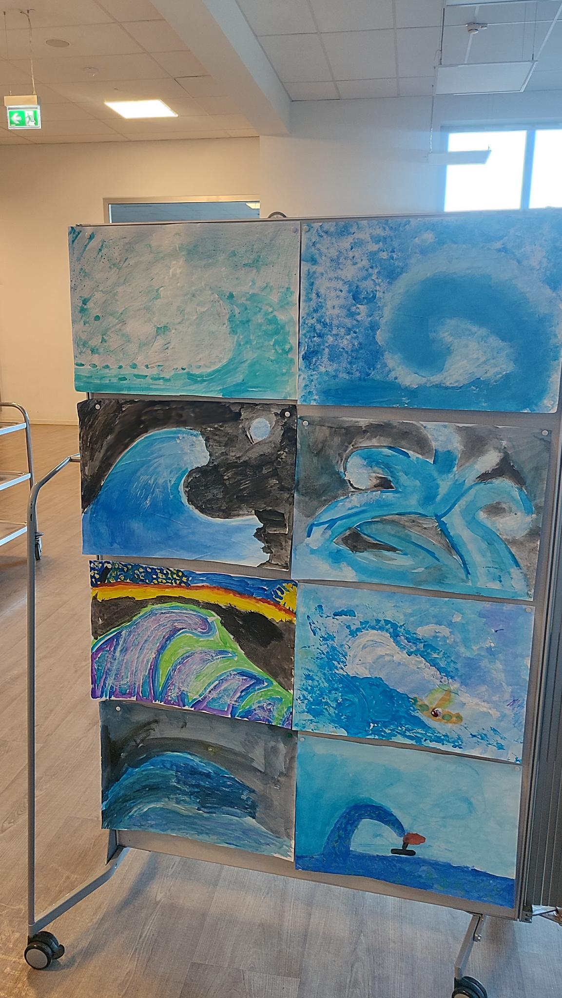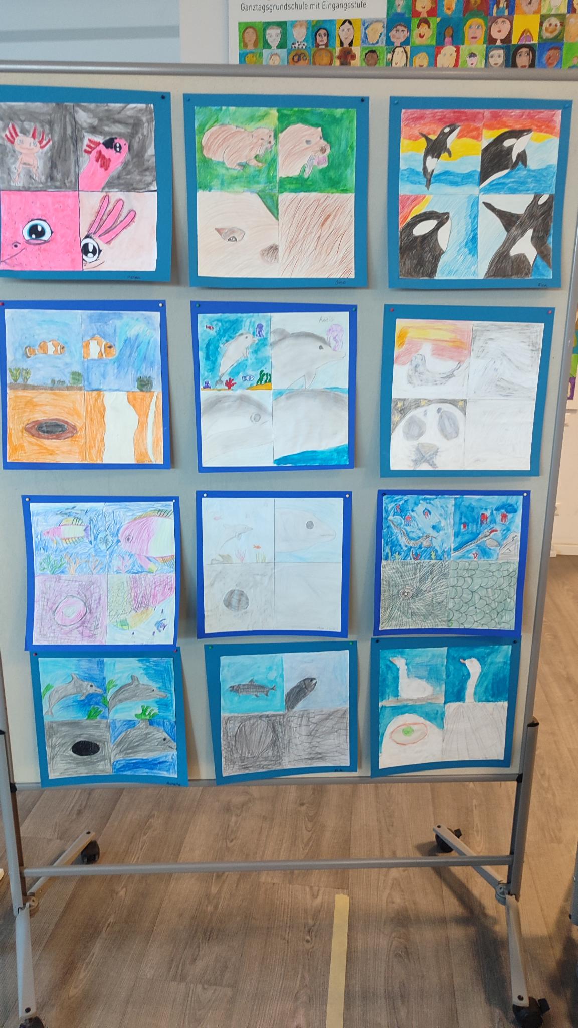 In der Kunstausstellung der Otterklasse dreht sich alles um das Thema Wasser. Mit großer Neugier und Kreativität haben sich die Otterkinder auf eine künstlerische Entdeckungsreise begeben und Wasser in seinen vielen Facetten erforscht.