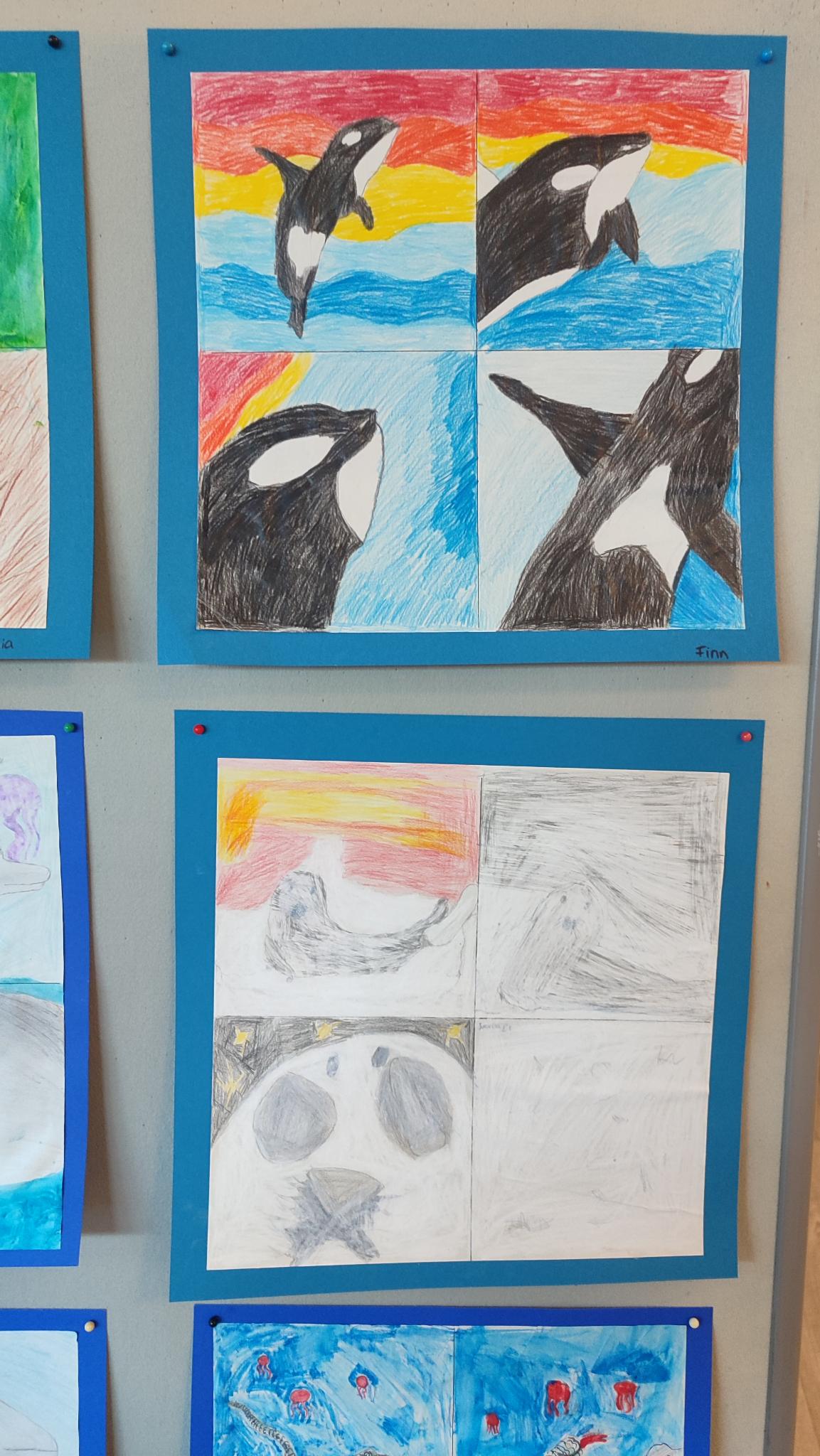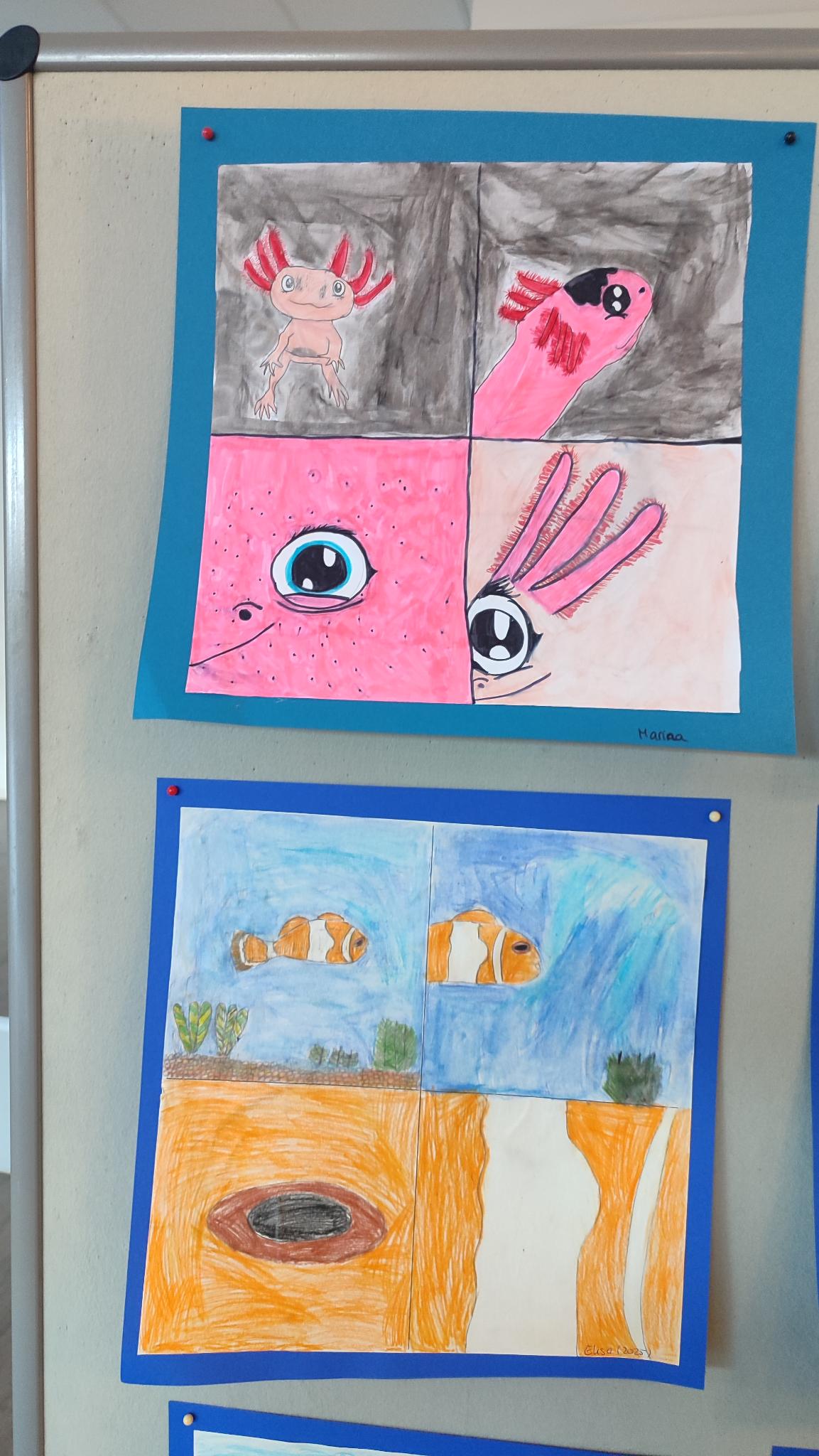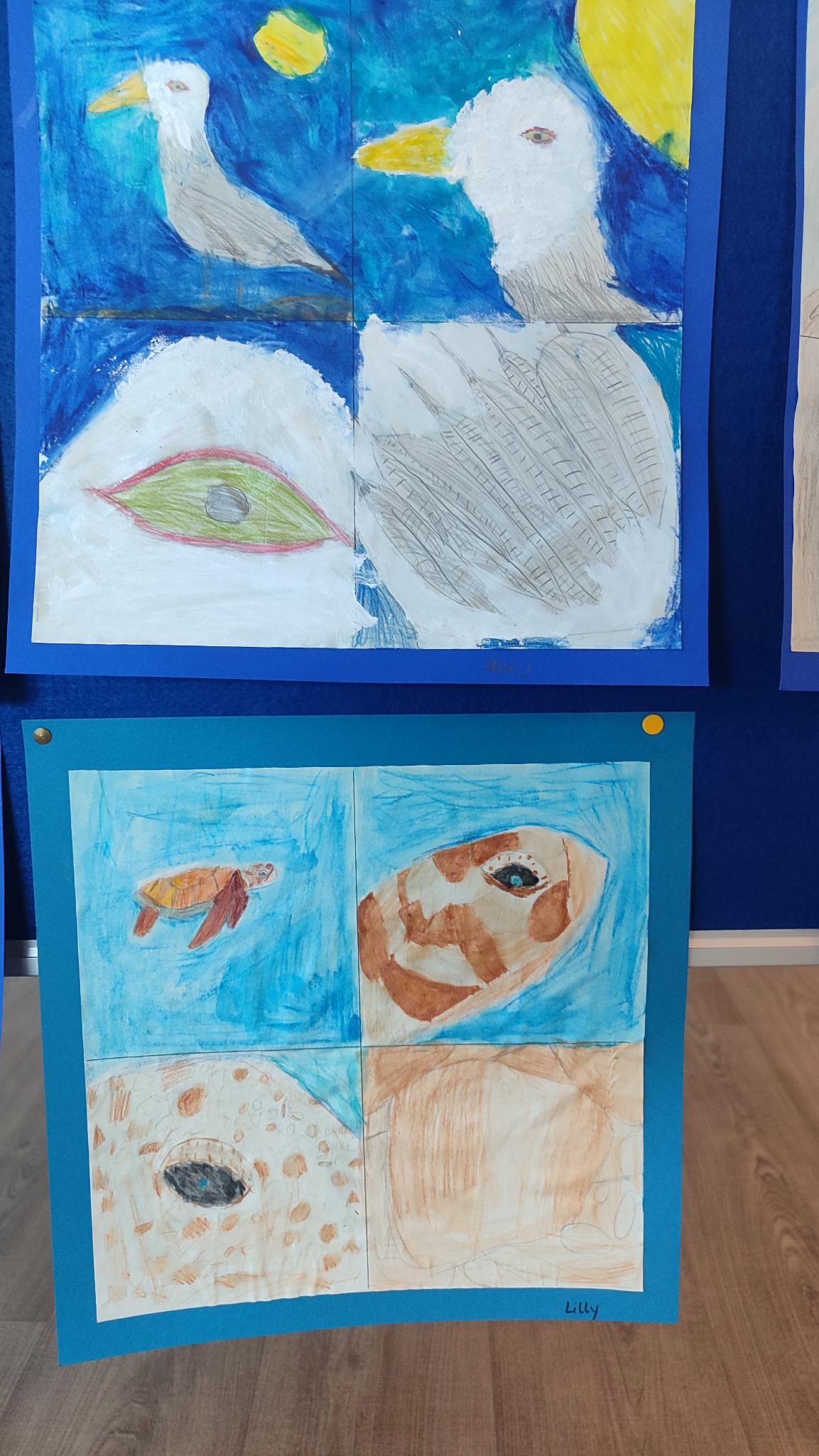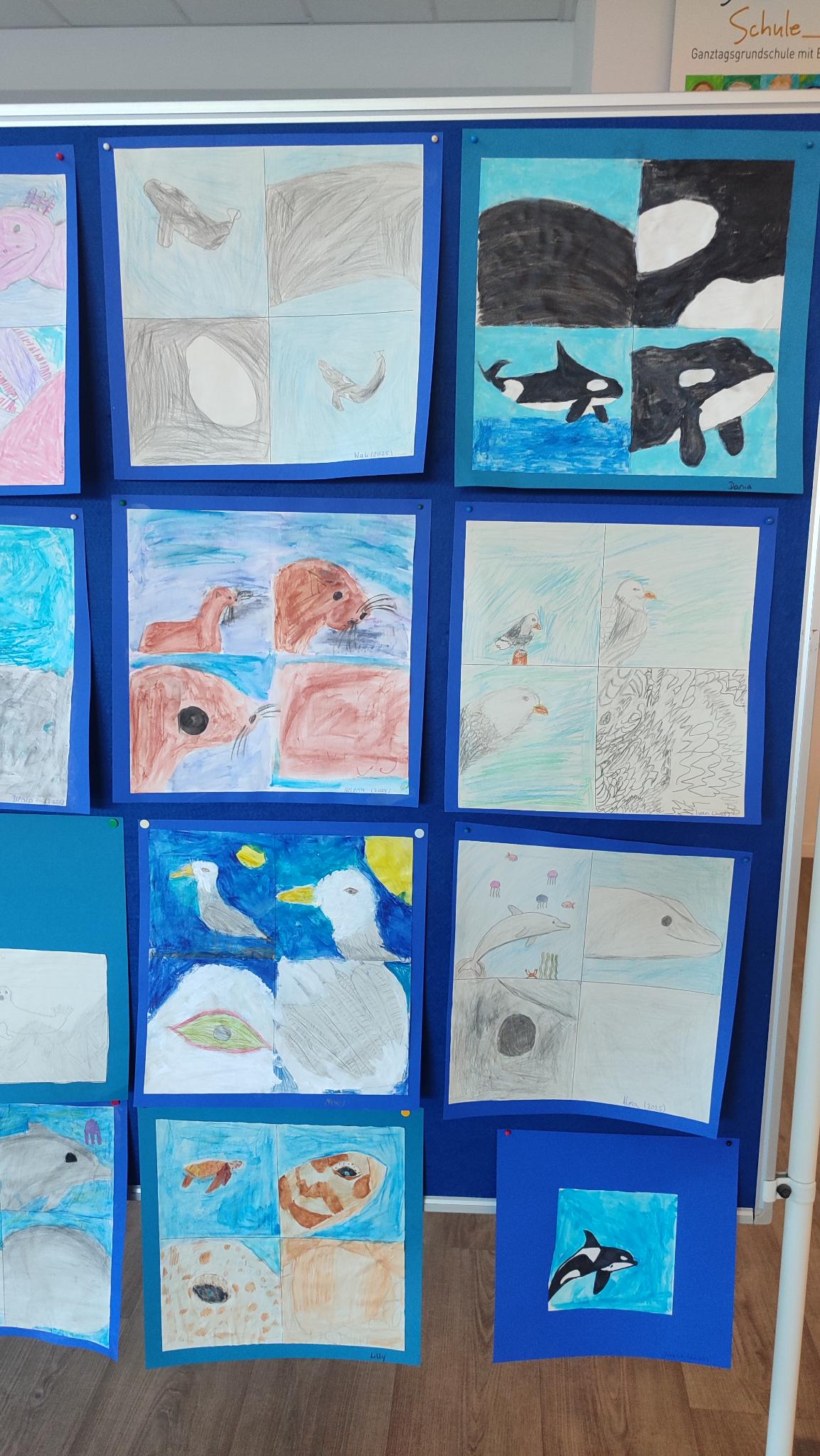 In der Kunstausstellung der Otterklasse dreht sich alles um das Thema Wasser. Mit großer Neugier und Kreativität haben sich die Otterkinder auf eine künstlerische Entdeckungsreise begeben und Wasser in seinen vielen Facetten erforscht.