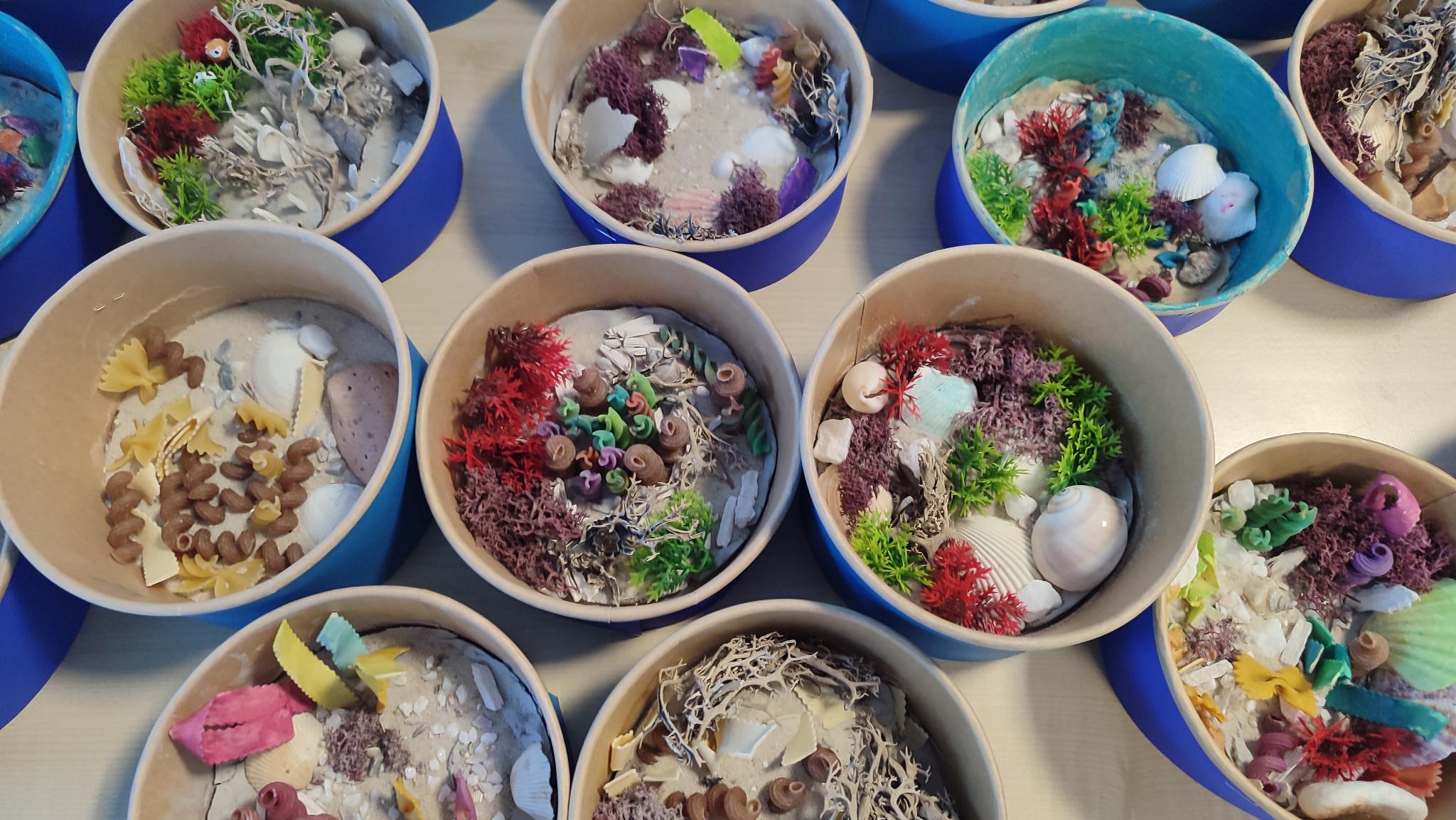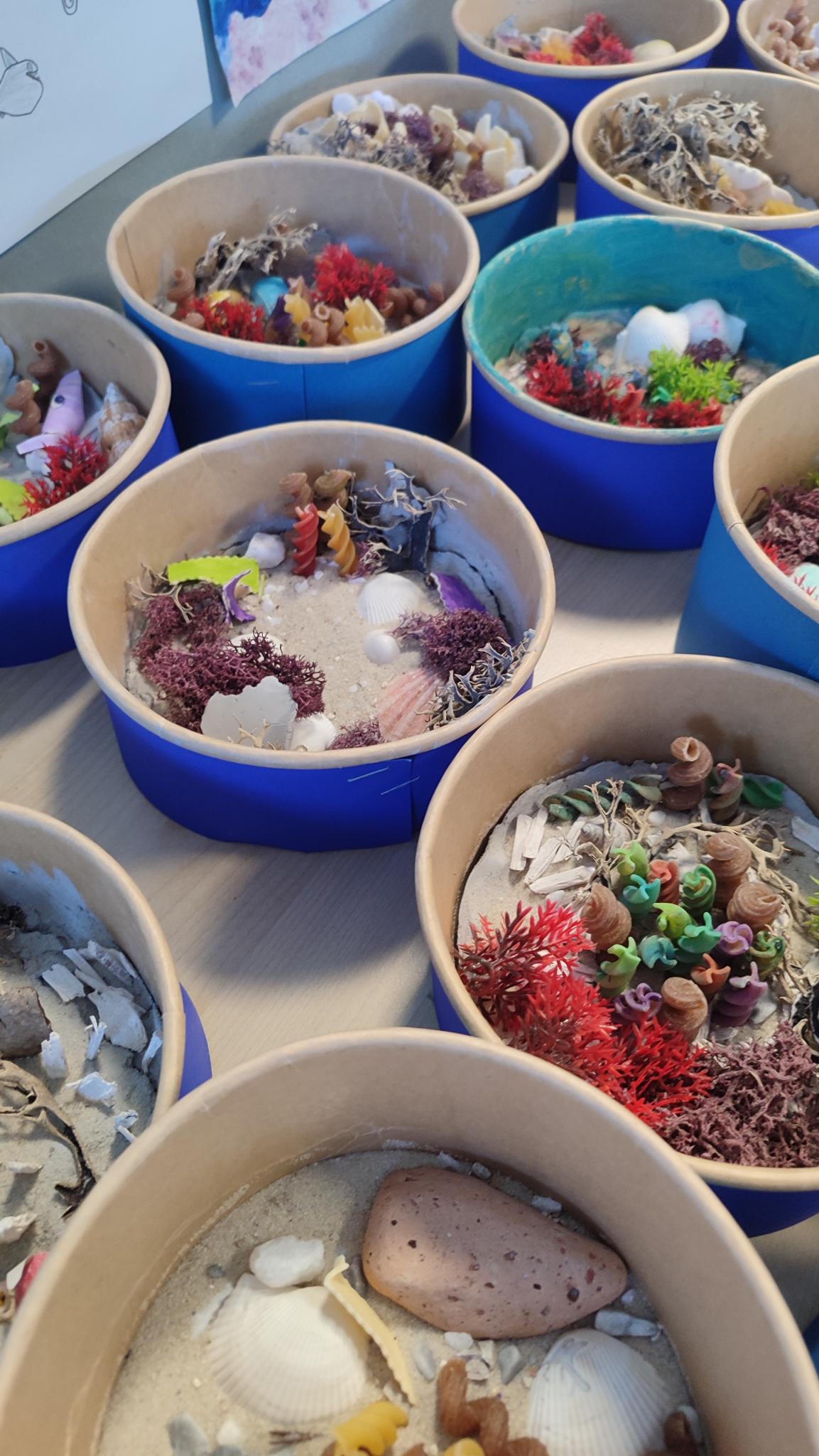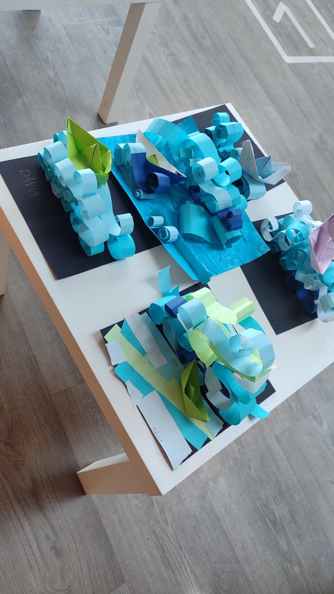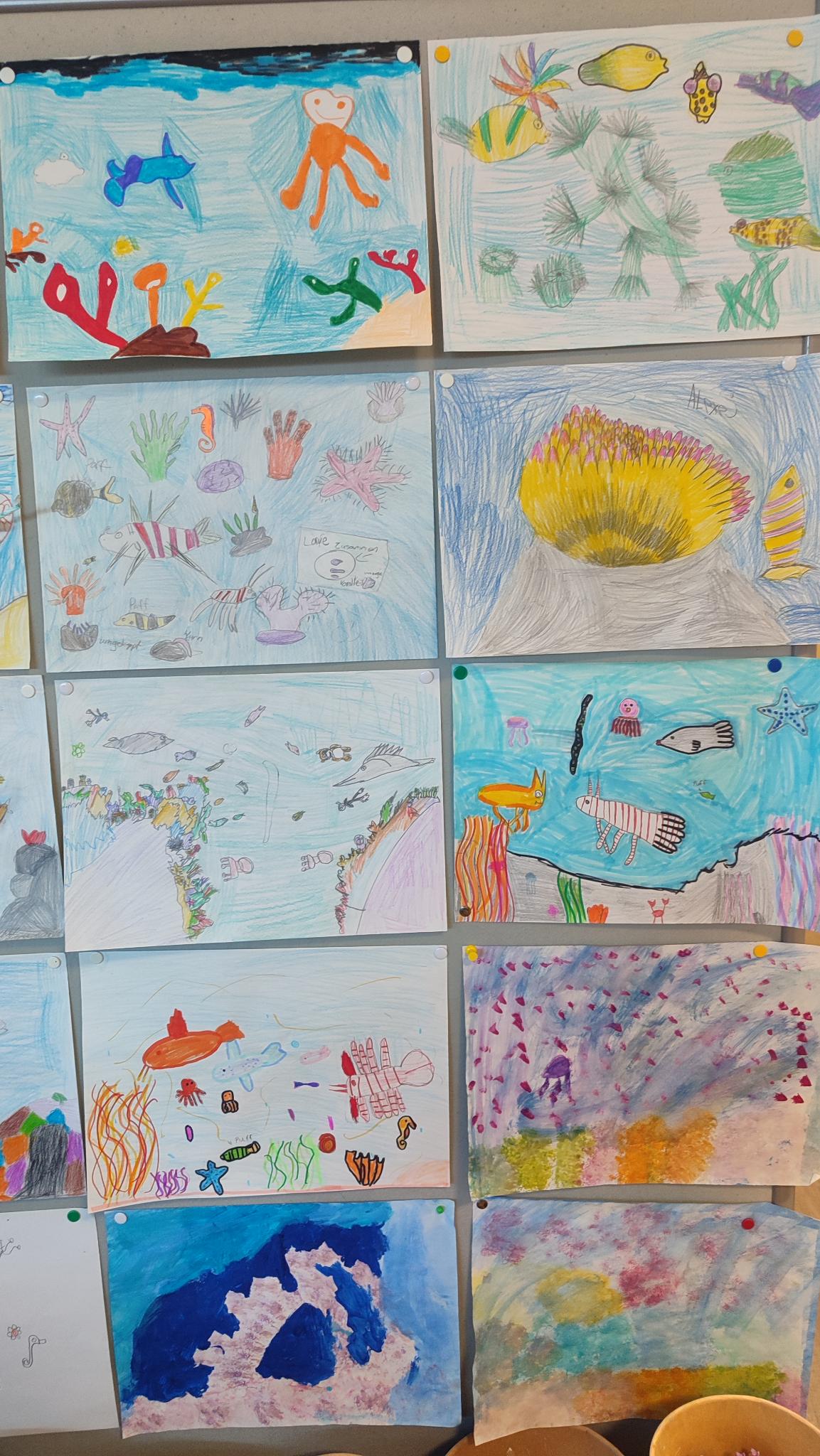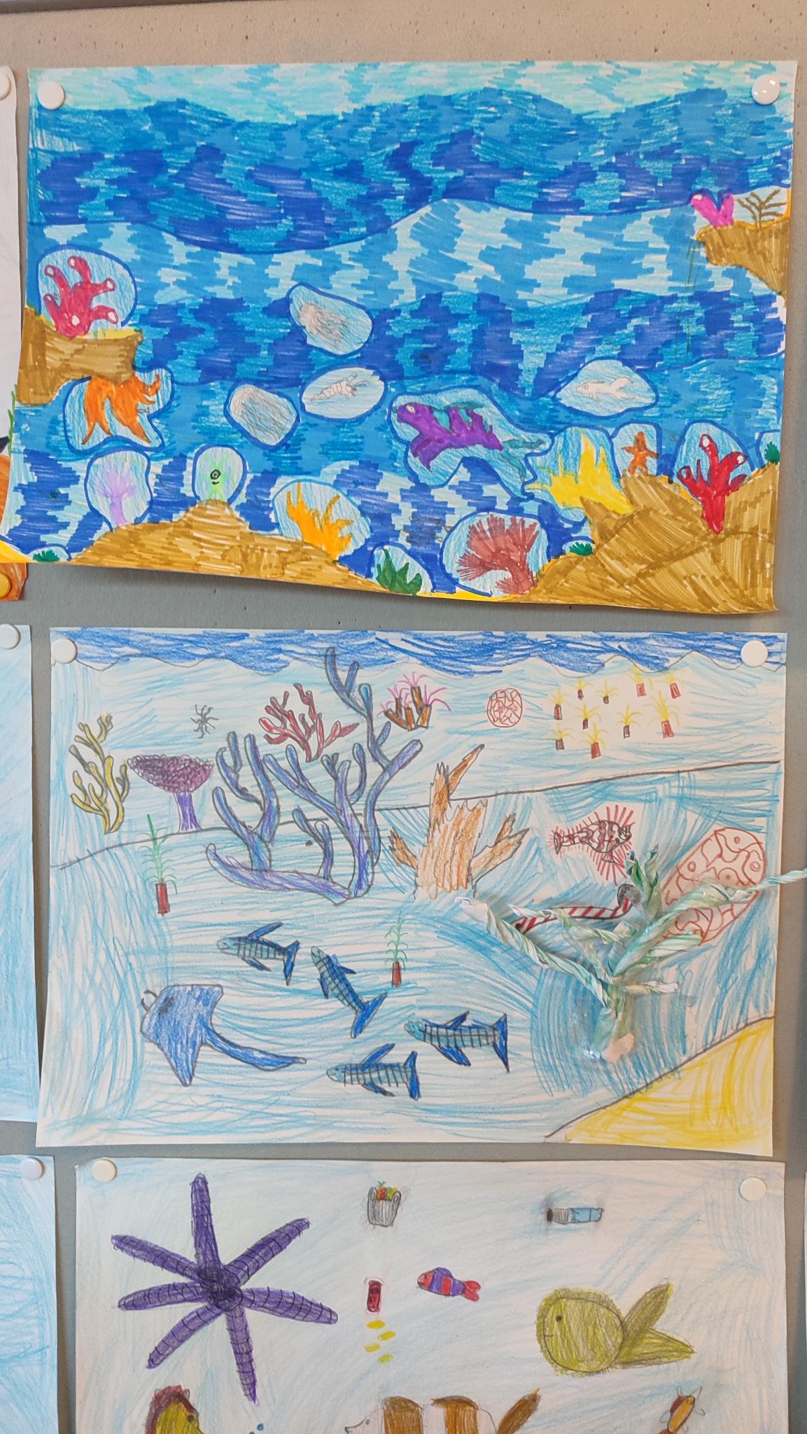 In der Kunstausstellung der Otterklasse dreht sich alles um das Thema Wasser. Mit großer Neugier und Kreativität haben sich die Otterkinder auf eine künstlerische Entdeckungsreise begeben und Wasser in seinen vielen Facetten erforscht.