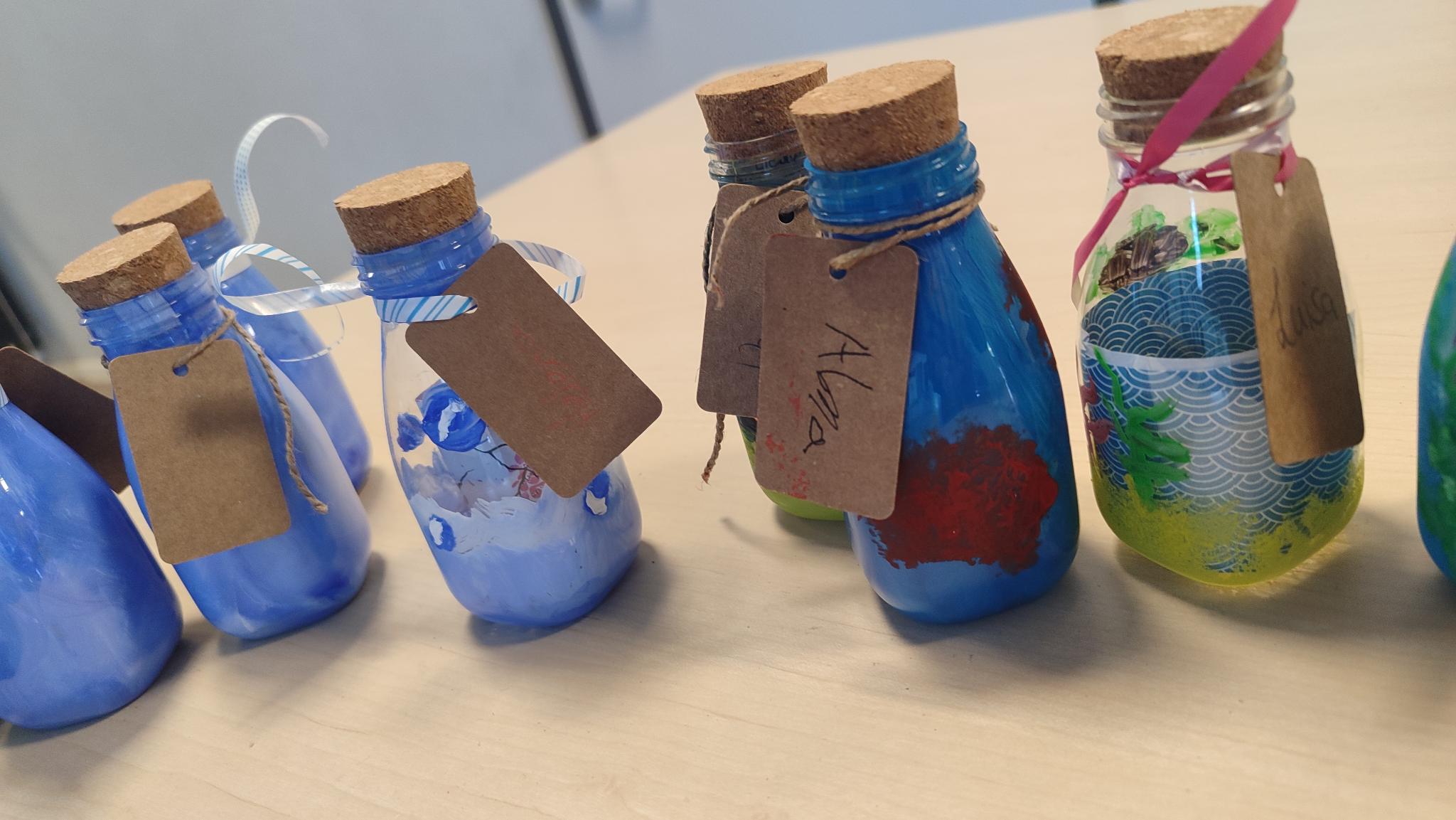 In der Rolle von Tierforscherinnen und Tierforschern beobachteten die Kinder verschiedene Wassertiere ganz genau und hielten sie aus unterschiedlichen Distanzen fest. So entstanden spannende Perspektiven und detailreiche Darstellungen. Sogar eine Flaschenpost wurde von den Otterkindern auf die Reise geschickt. Die Ausstellung lädt dazu ein, in eine farbenfrohe Wasserwelt einzutauchen und die kreativen Ergebnisse dieser besonderen Auseinandersetzung mit dem Element Wasser zu entdecken.
